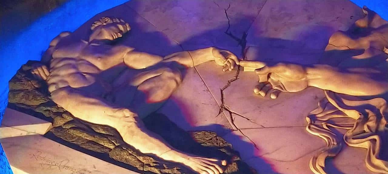 La video n’est pas très difficile à comprendre, elle cite les nombreux pays où Carlos a laissé ses oeuvres, raconte le sauvetage titanesque qu’il a mené de la vierge de Carmen frappée par la foudre et cite rapidement certaines oeuvres majeures dont: La création d’Adam; Oui, celui du plafond de la chapelle Sixtine, mais en 3D et en marbre… Laquelle sis au coeur du coeur de la cathédrale de sel.